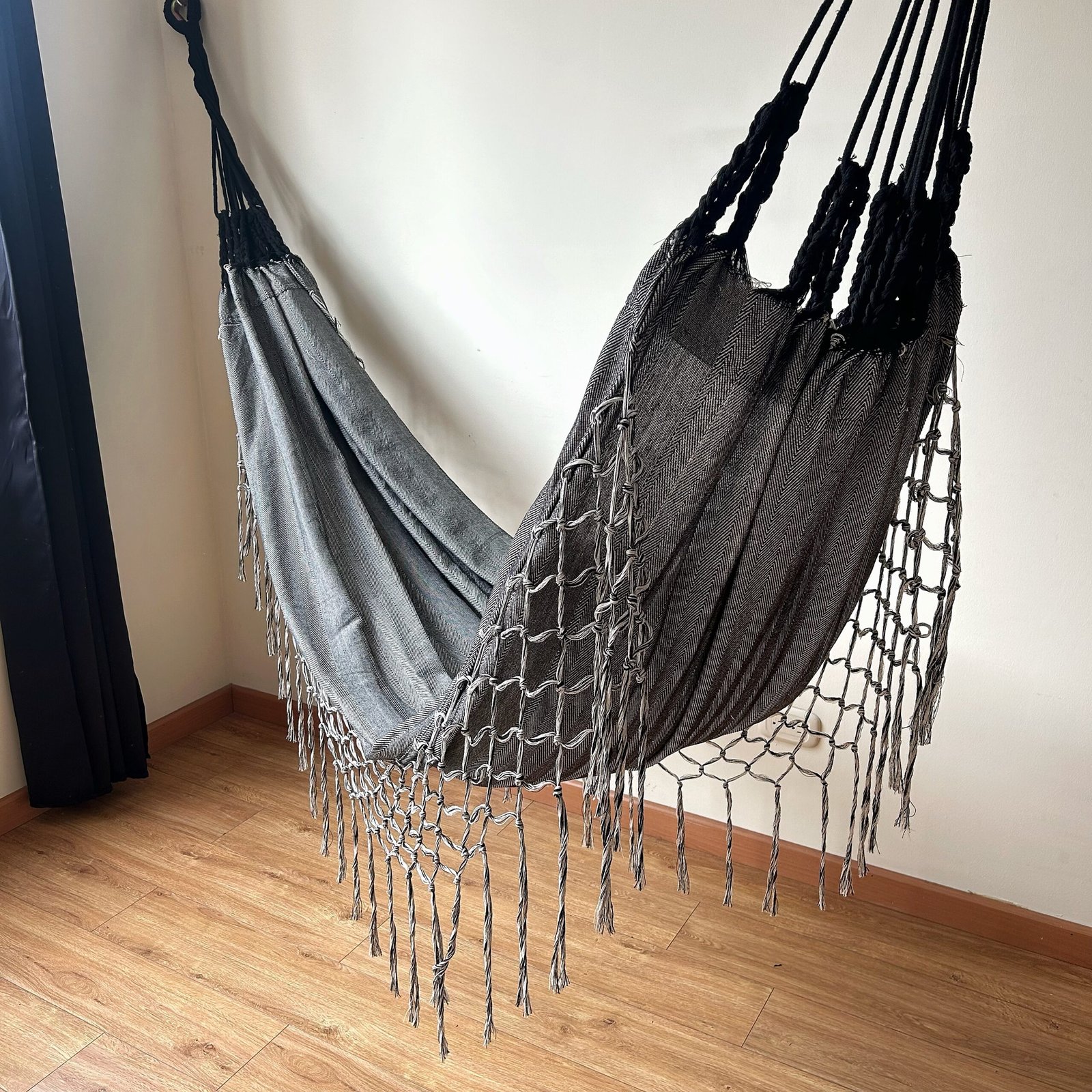 Hamaca en Algodón con Flecos Negro-Gris Jaspiado